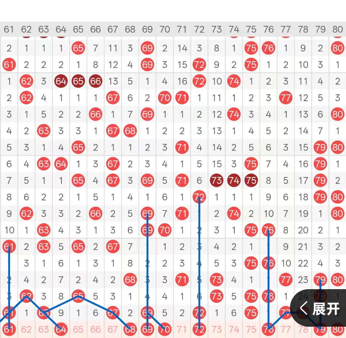 四区:上期四区间开出了8码,六字头头部位置62孤码的分边号码6163两码同时开出,尾部位置三期遗漏下落的67,与4期遗漏回补的69两码,均以孤码形态开出。七字头开出头部位置73的双重分边号码,六期遗漏下落的72,中部位置75的空1座重,尾部位置开出七十七七十八两码,以对子形态开出。本期六字头头部位置可关注616367三码三期遗漏的一码做重即可,优先考虑61的座重,属于梅花形态的两边,其次中部位置关注65的菱形分边号码6466二选1,重点关注64的9期遗漏开出,尾部位置6769两码孤码可考虑分边号码6870,下落一码即可。七字头头部位置关注72的六期遗落座重,其次75的双重分边号码可关注76,且属于七十七八对子的分边号码,尾部位置则关注80的倒三角空2开出即可。