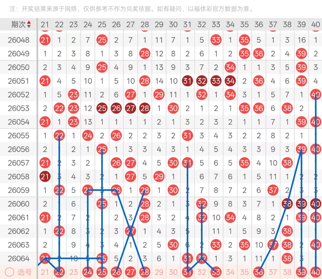 二区:二区间上期开出5码,二字头头部位置等距2下落的21,和等距3下落的25,两码均以孤码形态开出,尾部位置处于放空状态。三字头开出头部位置6期遗漏下落的31,与两期遗漏回补的32以对子形态开出,尾部位置开出了三重的38,中部位置处于放空状态。本期二字头头部位置可关注2125两码的1码做重,其次分边号码二十二二十四可重点关注,且24与26两码为5期遗漏下落,关注一码的下落即可。尾部位置关注27的两期遗漏回补,与29的6期遗漏二选一即可,不排除再次同开。三字头本期头部位置关注3132对子的一码座重,优先考虑35的六期遗漏下落,其次中部位置三十三、三十五、三十七三码空一回补,优先考虑35的空一下落,且十一期遗漏的36也需要防守开出,尾部位置3940两码作为仿形态可考虑对子下落。