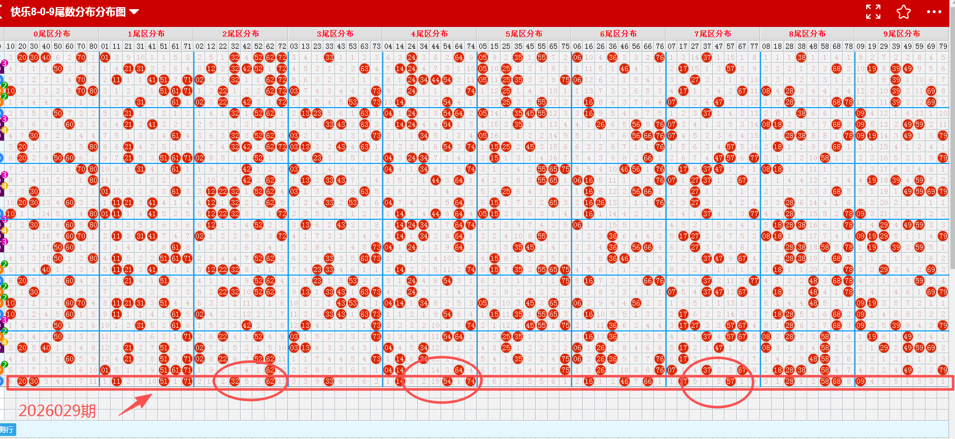 上图是快乐八2026028期的尾码走势图,从图中看0尾到9尾出号个数依次是:0尾号码区开出2个;1尾号码区开出3个;2尾号码区开出2个;3尾号码区开出1个;4尾号码区开出3个;5尾号码区开出0个;6尾号码区开出3个;7尾号码区开出2个;8尾号码区开出3个;9尾号码区开出1个;再看小尾号码(0尾-4尾)区有11码,大尾号码(5尾-9尾)有9码;数据比对统计后可以看到本期1、4、6、8尾出号数量最多,一共开出了12个中奖号码。本期5尾出现断区!由走势比对推断2026029期重点需要关注2、4、7尾区号码下号热度回补和落号数量增加的概率较大。