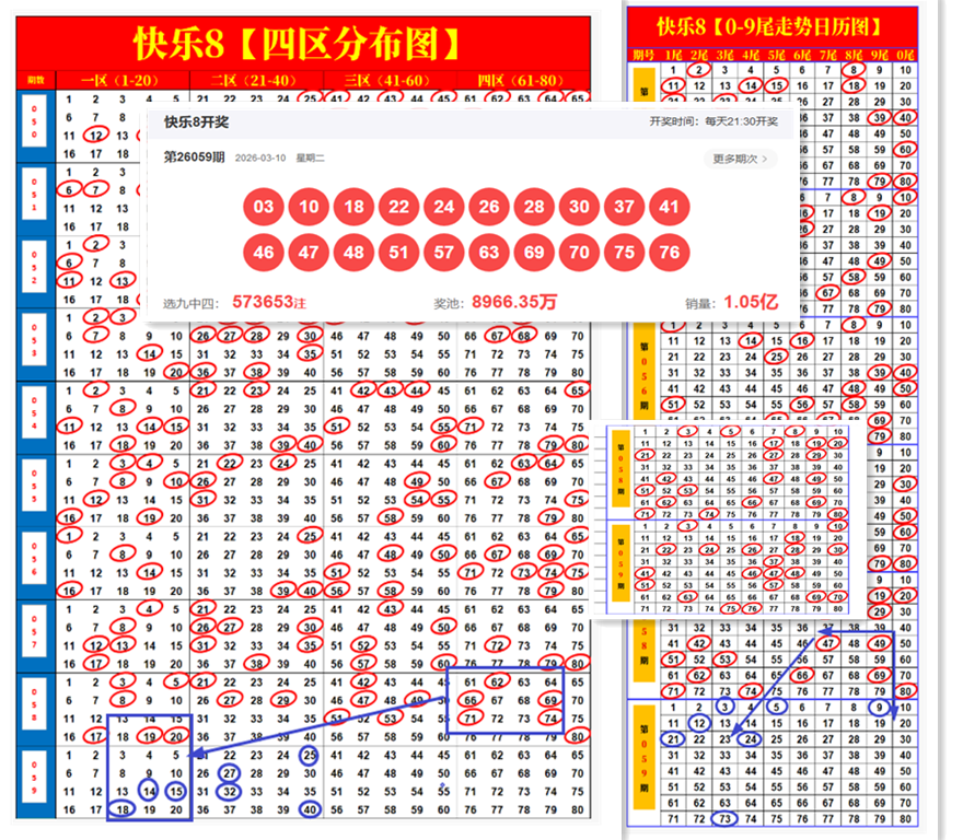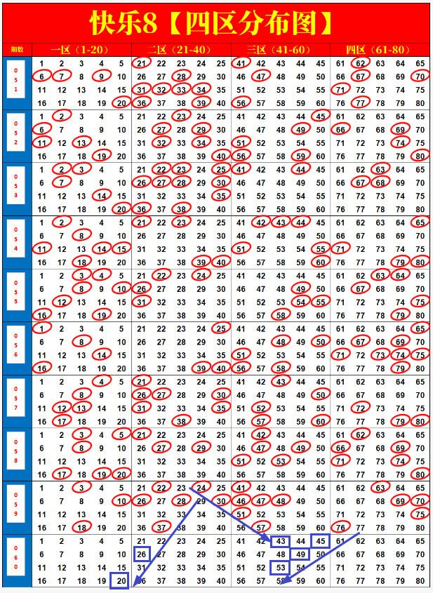快乐8第2026060期尾号、四分图画线分析,早起的鸟儿有虫吃!