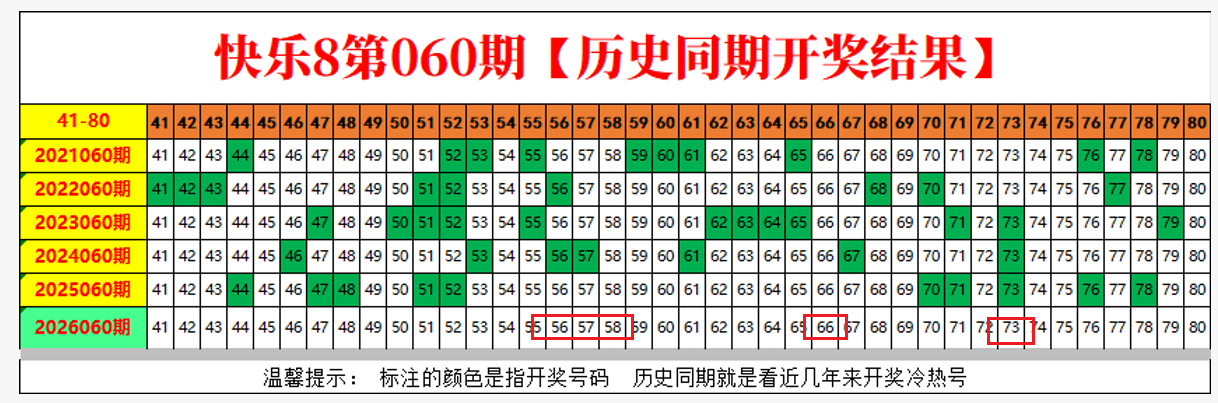 历史同期开奖结果仅做个参考数据即可。以后不会做过多的分析,因为涉及的号码比较多,也无法更细致的体现出来。它不像开奖走势图那样,可以直观的看到,由于开奖期数的限制,所以还是把重心放到常规走势图上。