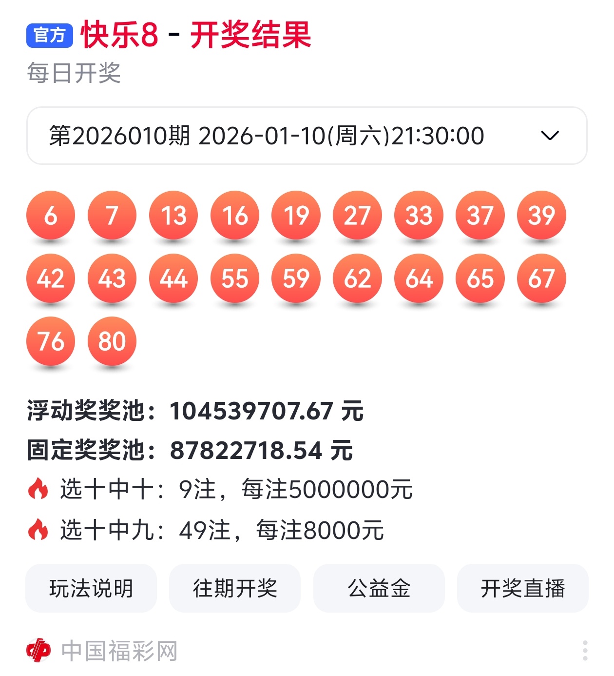 快乐8第2026011期走势分析【上期金胆中】