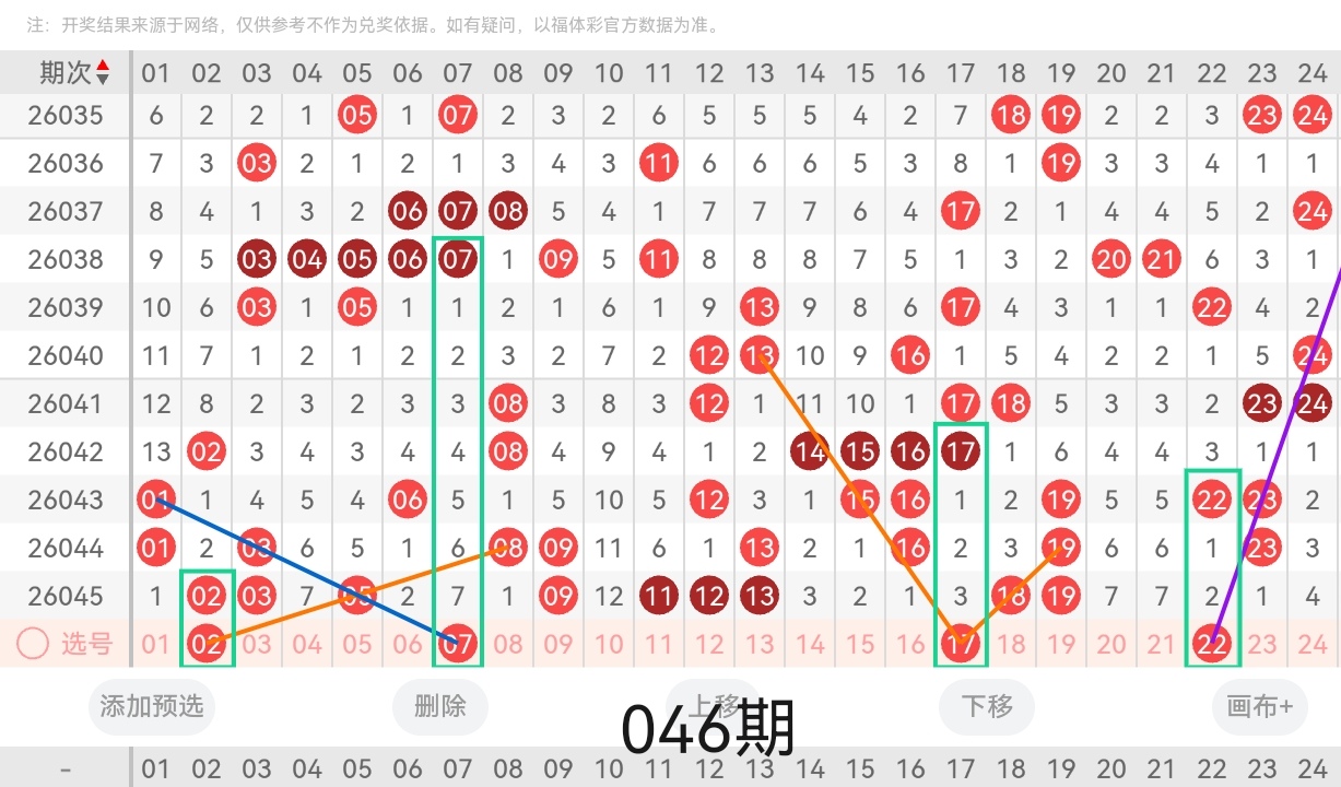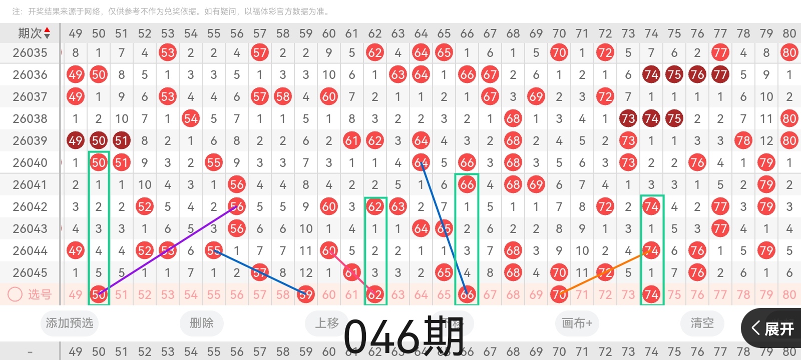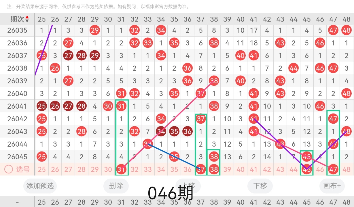 通过以上对上期的简单回顾,下面进入2026046期(下面简称本期)的选号分析: