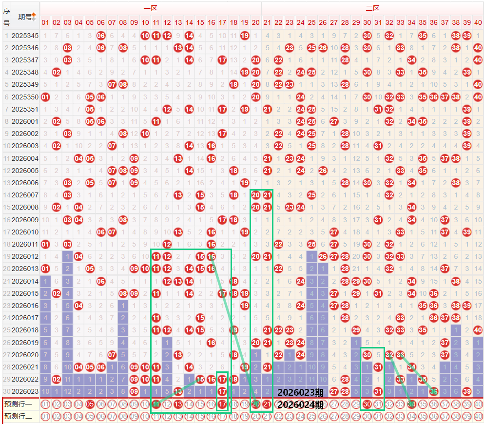 如图所示:在本期小数区的选号中,注意在上期的走势中一区间开出了3枚中奖号码,落位在区间的最低位,在上期的一区间开奖结果中,落号形态出现了断重号的走势,保持着09的重号第三期,以及17的重号第二期走势,本期重点关注17的重号第三期走势,以及13的重号第二期走势,前段位置在02的位置下方并未出现号码的延续,继续保持着较长范围的断号走势,本期注意04 05 06的位置下方出现遗漏二期号码的回补,但是需要注意的是目前的0字头前段位置的落号走势明显偏弱,因此需要谨慎考虑0字头前段的号码,二区间上期开出了5枚中奖号码,落位在区间的均值走势,前段位置依旧保持着断号走势,落号形态重号出现回补,28号,二区间近期多次出现奇数或者是偶数的连续重号走势,在本期的重号中第二期的走势,仅36一个号码,因此要考虑36的重号形态,在上期开出31的位置,本期要注意21的同区同尾交替走势,或者是考虑31的位置下方出现边号,注意30 32的二选一考虑。
