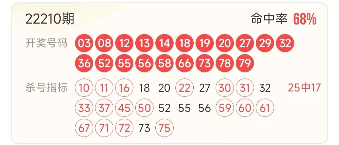 在讲课之前咱们先回顾一下往期均线分析的杀号命中率,一定会让你大开眼界。 2022208期27中22,命中率81.5%,2022209期26中21,命中率80.8%,2022210期25中17,命中率68%,说实话,老赫每次选号能做到50%就算很开心了,何况一般时候还做不到。相信平台的朋友们快乐八能把杀号做到如此命中率之高的屈指可数。很多时候我们杀掉的都会是开奖号码,这个倒是真的。有的时候甚至一个不中,都怀疑是不是我们天生的杀号高手。相信很多人都有这个感觉是不是。