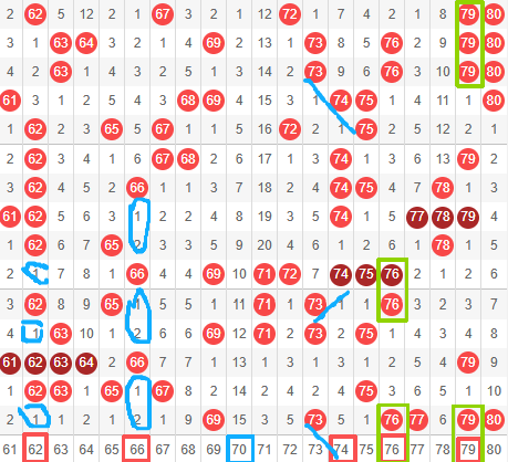 79: 79上期开出,也是多次开重号,回旋号,喜欢追重号的小伙伴也可以重点关注下79.