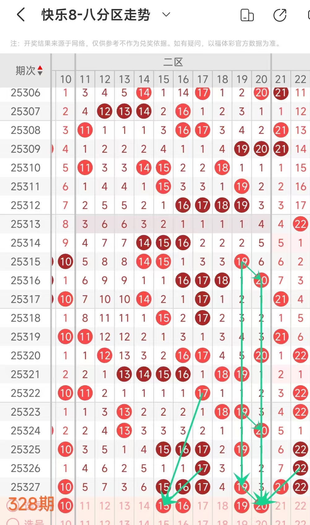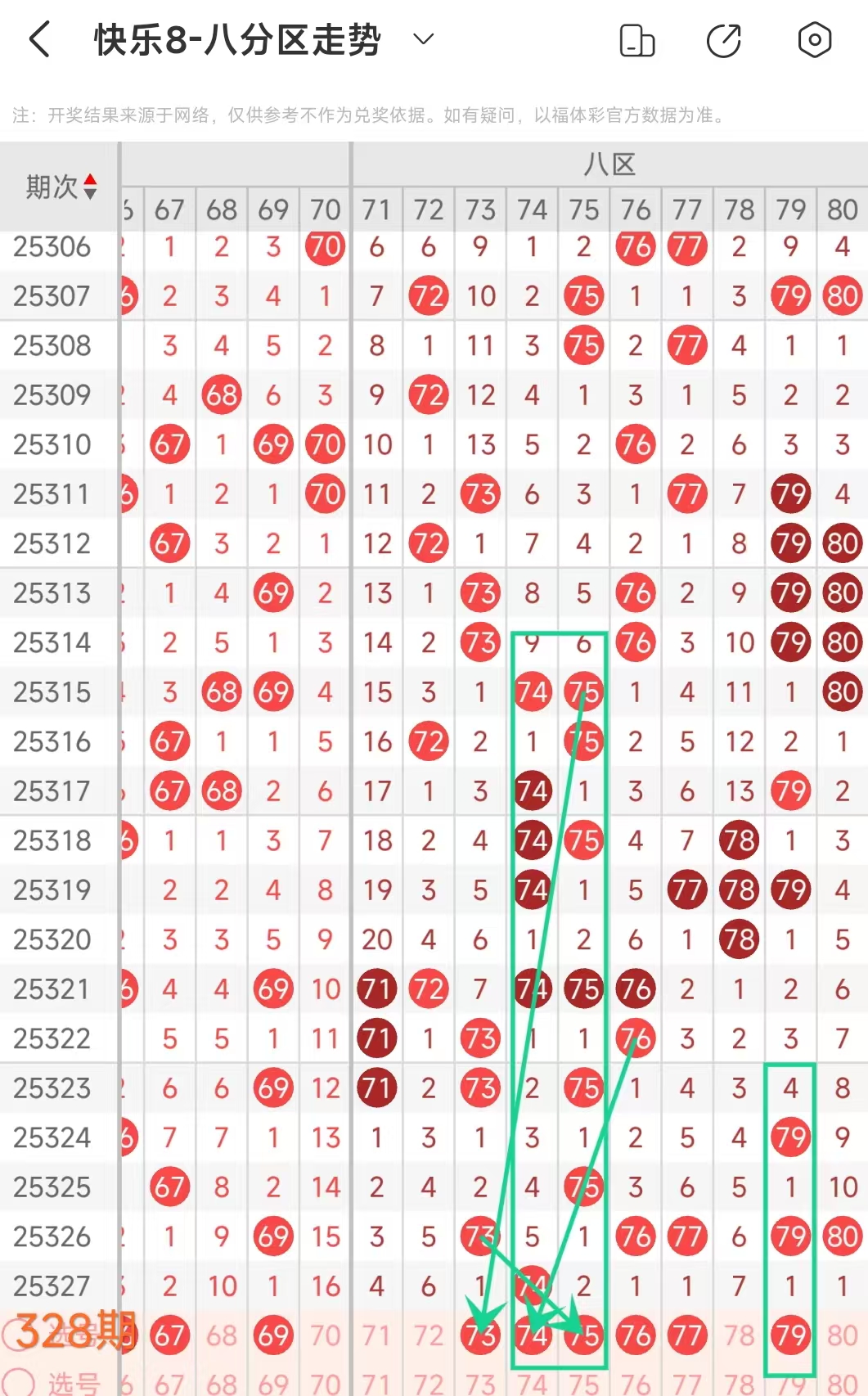 在快乐8的探索之旅中,通过对开奖走势图细致入微的观察,我们总结出一些具有参考价值的规律。几乎每一期开奖号码都呈现出以下显著特征:其一,大概率出现连号;其二,常常伴有边码;其三,遗漏值为1 2 3的号码频繁现身;其四,重号现象也较为常见。掌握这些要点,能为我们的投注提供方向指引。我们约定采用八分区走势图来展开分析。