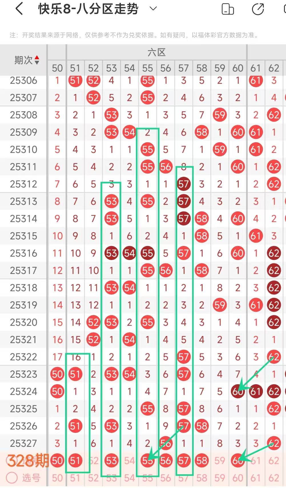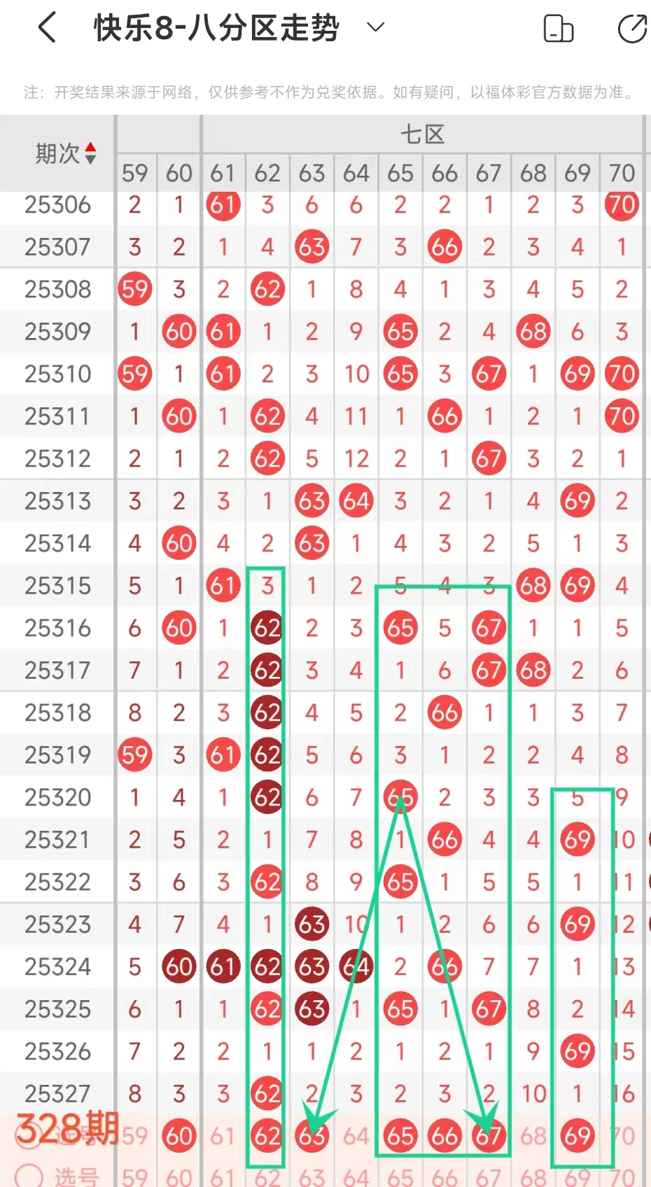 上期七区开出62 这1个号码,本期考虑出2个左右。
