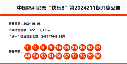 首先我们先来回顾快乐8第2024211期开奖号码: