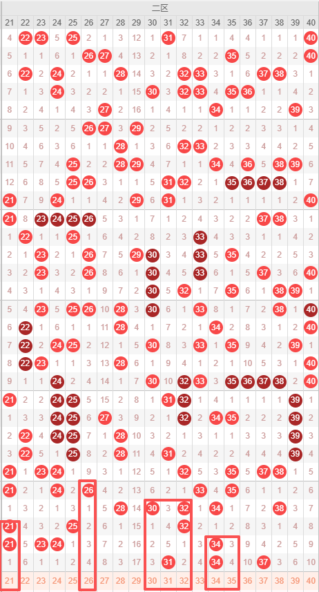 二区:最近二区10期出号情况为:6 7 5 5 7 5 5 3 4 3,总出号情况为50个,平均出号5个,本期二区号码推荐:21 26 30 31 32 34 35。重点关注:21 26 30 31。