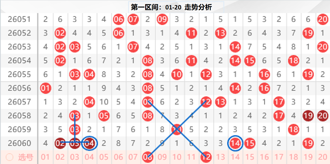 一区分析:【01-20】(走势图标注号码非小黄车大底,请谨慎参考,具体思路将在直播间分享讨论)