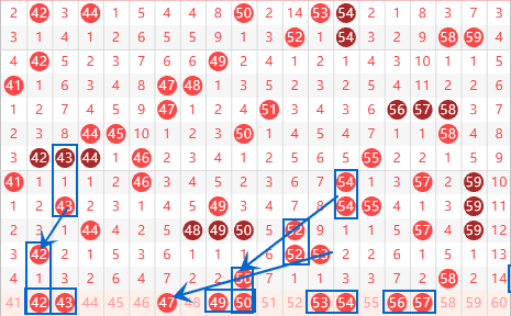 本期的42号数字我们可以防守一下,走势是属于1331走势,我们可以防守一下。本期的47号数字是遗漏7期的号码,本期遗漏7期的号码应该会出两个,所以本期的47号数字我们可以关注一下。本期的50 51我们要注意出一个号码的情况,重点考虑一下50号数字的出号情况。