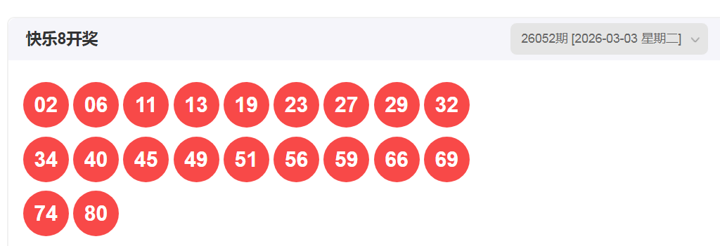 “专注快乐8,开心快乐吧!”您好,我是九尾锦鲤,有幸与您在这里相遇。上期(快乐8第2026052期)分析和推荐部分正确!今天组号上会继续努力!小车方案已精选优化,期望对您今天的选号、组号有所帮助。下面是我关于快乐八2026年第053期的走势研判分析及精选推荐。