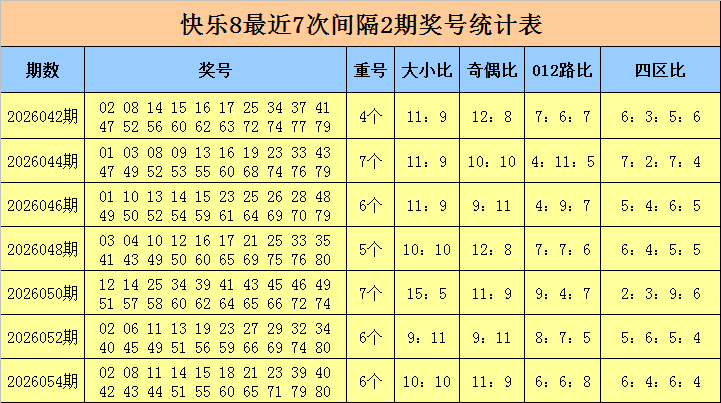 福彩快乐8第2026054期开出奖号:02 08 11 14 15 18 21 23 39 40 42 43 44 51 55 60 65 71 79 80,其中奖号奇偶比为11:9,大小比为10:10,012路比为7:4:9,四区比为6:4:6:4,包含4个重号02、14、23、44。