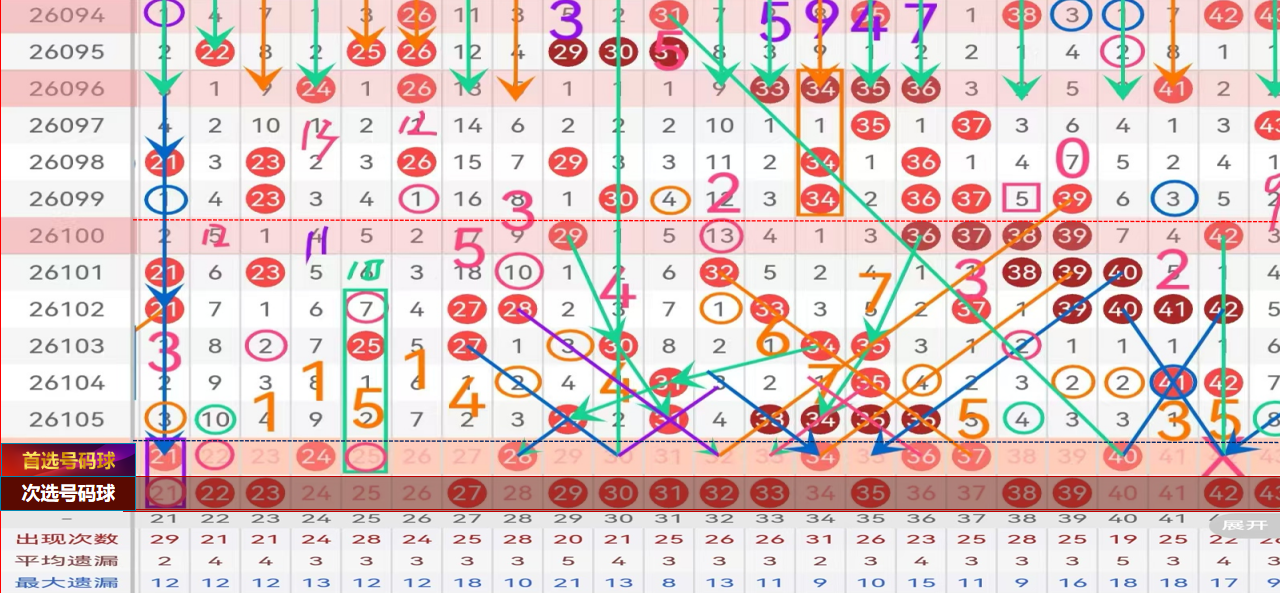 二区间推荐主做号码: 21 28 34 36 37 40;防守号码:25 26;