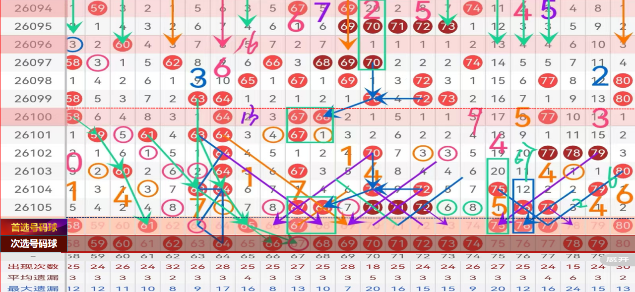 四区 间给到主做号码球:61 65 67 75 77 80; 防守号码:63;
