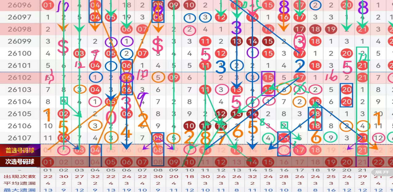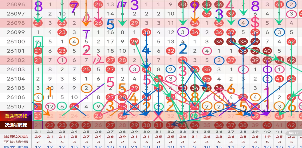 二区间上期开出了7个号码球,热态开出;21本期走重是二区走重属性是二区间不错的号码球,符合近期72的遗漏属性;26点位形态码,基于本期没有遗漏属性,特高数据属性,可做防;三斜连的28,小数据码,遗漏回补码,本期可看重主防;孤码34这里,重点关注两个分边码,可防本身34走重,做三连复式码防守,三择一推荐33;尾部39本期规律码,可走重主防,不错的点位形态码;
