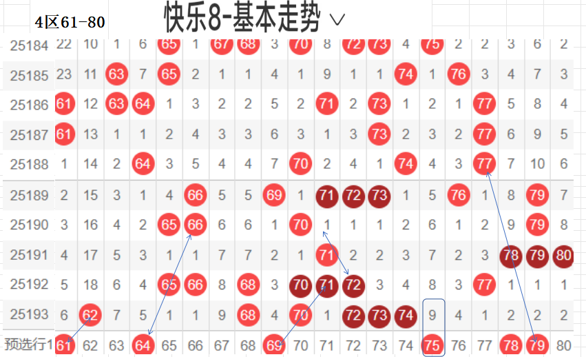 四区:(61-80):遗漏5期(含5)以下有16码,0码62 68 70 72 73 74 6个,平均温开方式,上期开出6码,区间回暖,后区可防,本区间从以往数据来看,重码很强,一枝独秀的存在,可以连下多期,区间回暖后,本区间后区可防,与一区相比,也是温区.,对称下落码,隔期回补码,可以防守,这区对呈对称三角关系的胆码,斜三连有走势的胆码,联动落位码,都有各自的走向落位关系,根据走势选择一种方式选码.