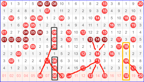 第一区间号码01-20,如果预测没有大问题的话,区间比应该这一期会将热区转移到本区了。308期的01没有出现,始终是一个不完美的收官。但好在08还在继续,那我们就还有机会。一区走到目前这个状态,始终觉得不是一个完美的走势,所以下一波必须要抓住。