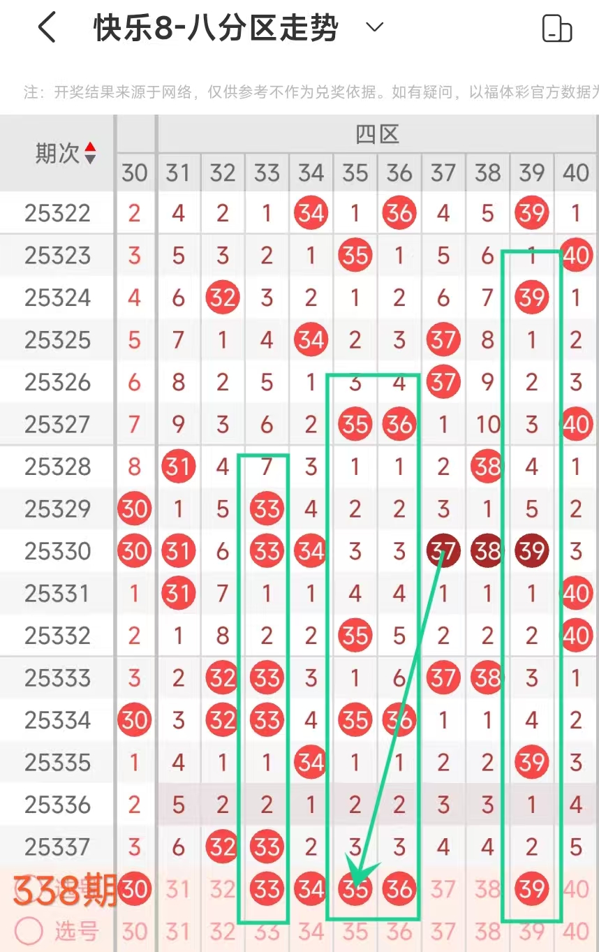上期四区开出32 33这2个号码,本期考虑2个左右。