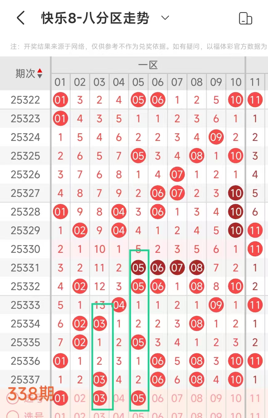 上期一区开出03 06 08 10这4个号 码,本期应该出3个左右。