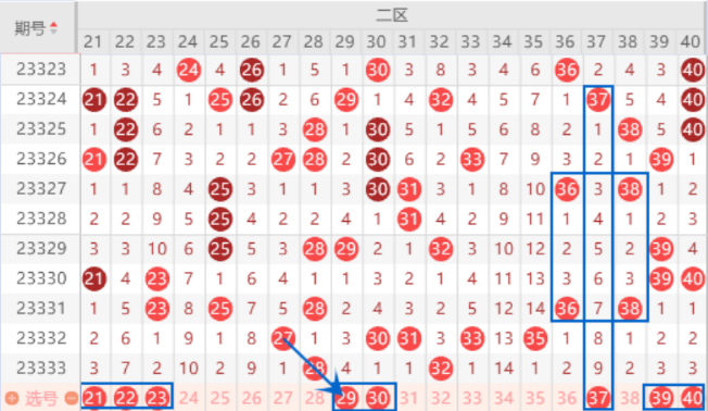 本期的21 22 23号数字我们要重点注意一下,这里有机会出2个号码的。本期的29号数字是属于镜像复制号码,出号机会很大,可以关注一下。本期的37号数字也是属于镜像复制,出号机会也是有的。本期的连号39 40和49 50号数字应该也是要落号的,我们重点关注一下连号49 50号数字落号情况就可以了。