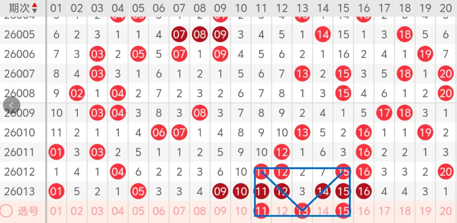 第一区间的走势分析:第一区间上期开出了九个号码球,主要的落号点位在一区间的后半区,走出了五奇四偶的形态走势,上期一区间的前半区落下了四个号码球,后半区落下了五个号码球,整个一区间处于走热的趋势,根据一区间的走势规律,今天的一区间我们主看一区间连码位置号码的落位,主看11 15的重码以及夹码13的封口,这三个号码球落下1-2码的机会还是有的,特别是这个13今天应该有很多朋友不敢用,13走出了斜连码的走势形态,11 15走出了对称的形态,这三个号球建议大家打个三胆拖,或者打个三码复二比较稳妥,参考为主!