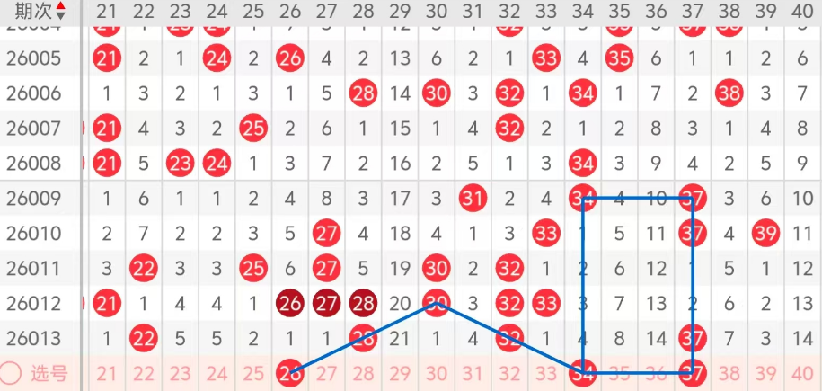 第二区间的走势分析:第二区间上期开出了四个号码球,主要的落号点位在二区间的前后半区,走出了一奇三偶的形态走势,上期二区间的前半区落下了两个号码球,后半区落下了两个号码球,整个二区间处于走冷的趋势,根据二区间的走势规律,今天的二区间我们主看二区间斜连码和对称号码的落位,主看26 34组合的落位以及34 37的落位,26 34都走出了斜连码的走势,34 37走出了对称,这三个号球建议大家打个三胆拖,或者打个三码复二比较稳妥,参考为主!