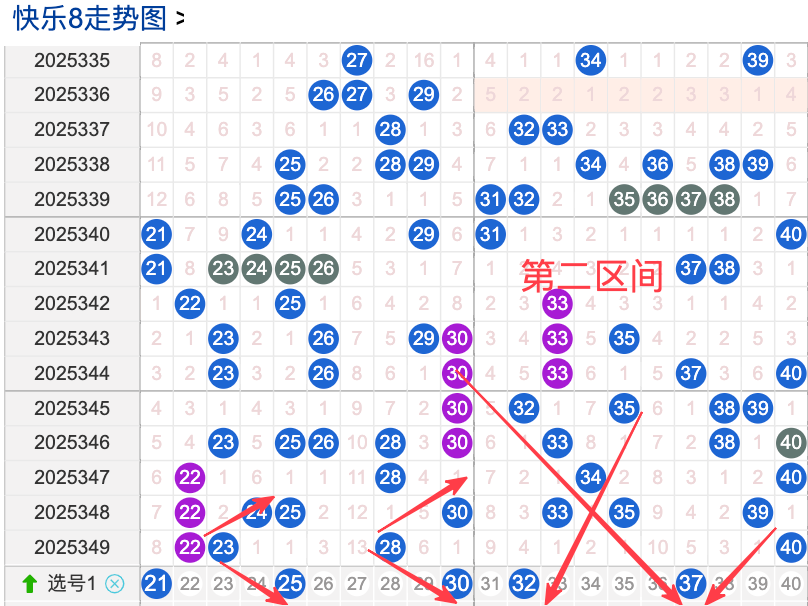 ·上期二区开出4个奖号(22.23.28.40)上期回顾二区开出4个奖号二区间在上期落位同比前期的话呈现了一个递减的落位趋势,先来看本期号码25整体活跃度较,在近 30 期里有一定的间歇性出现,不是每期都开,近期整体走势还是很稳定。号码30近期热度较,间隔性比较好,说明其在当前阶段活跃度较注意防守。号码32近期活跃度较热,有一定的间歇性近期整体走势相对平稳没有特别明显的冷热趋势变化,号码3730期内活跃度较热,没有明显的连续出现形态走势,整体表现比较动荡还是很稳定。