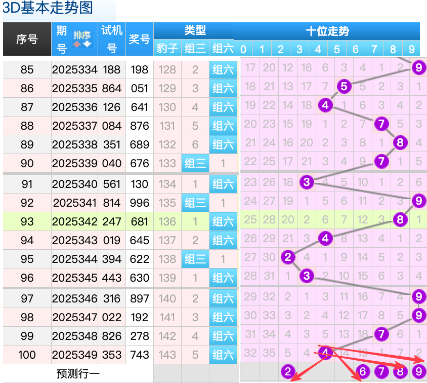 上期3D十位开出的奖号是4号,上期在十位上4号球这个号码在上期是一个小周期号码回补的落位点,本期来看7号和6号球在十位上要注意这两个号码是有机会继续顺着上期的4号球继续走出两个常搭配落位趋势这里的两码都是冷号注意防守一码就好了然后2号球还是一个冷回补的落位形态也是一个2跨的落位形态8号球还是一个号码这里是一个热码落位点,再来看9号球是回补这个点位参考就好,4号球这里的号码要防守走出重码回补的落位趋势