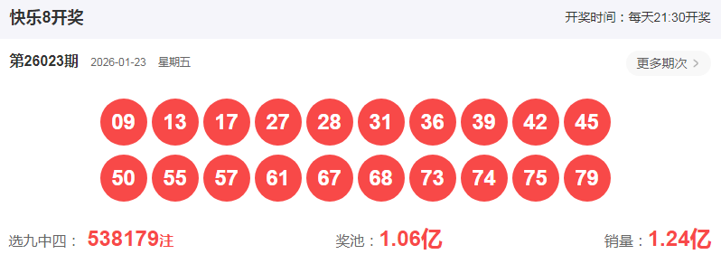 快乐8第2026023期开奖号: