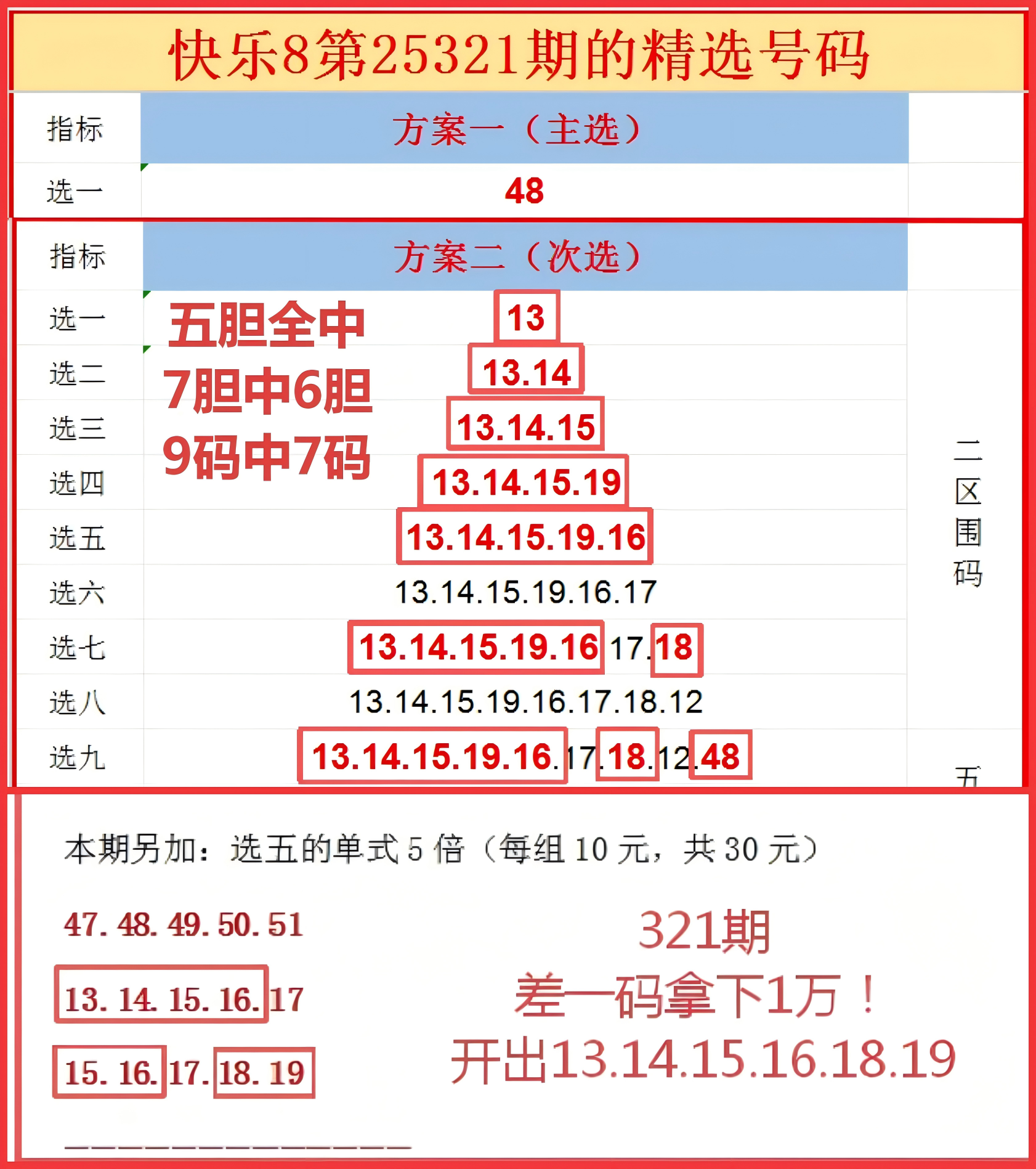321期:五胆全中!选五的9码复式中7码!单式选五倍投,五码中四码!