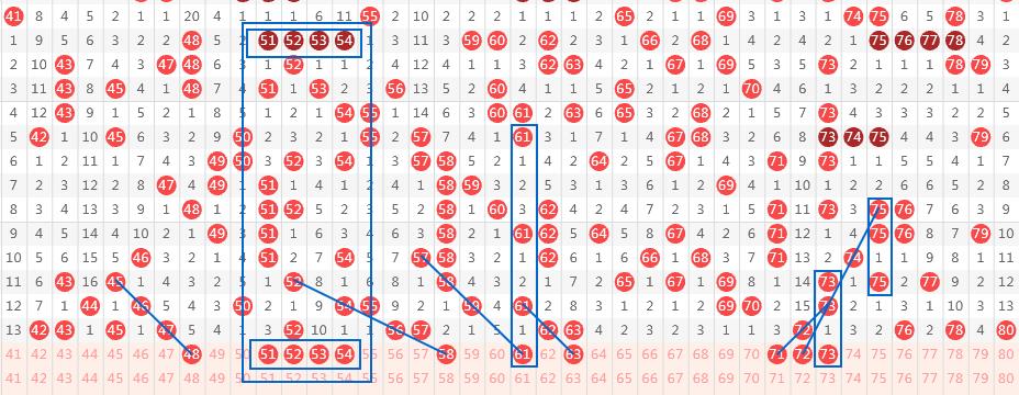 【第二区间41-80】:上期开出13个号码。本期推荐:48-51-52-53-54-58-61-63-71-72-73十一个号码。48斜连四期号码;51-52-53-54主要考虑5字头连号周期出号,拆开来分析,51同路四期号,52同路三期号,53奇数斜连三期、同路三期号,54偶数三期斜连、等距号码;61遗漏1-2-3形态号码;63三斜连号码;71-73和2026029期73-75为同形态号码;72斜连四期号。区间推荐重点号码:三小区间52-53-54-58,四小区间63-71-73。