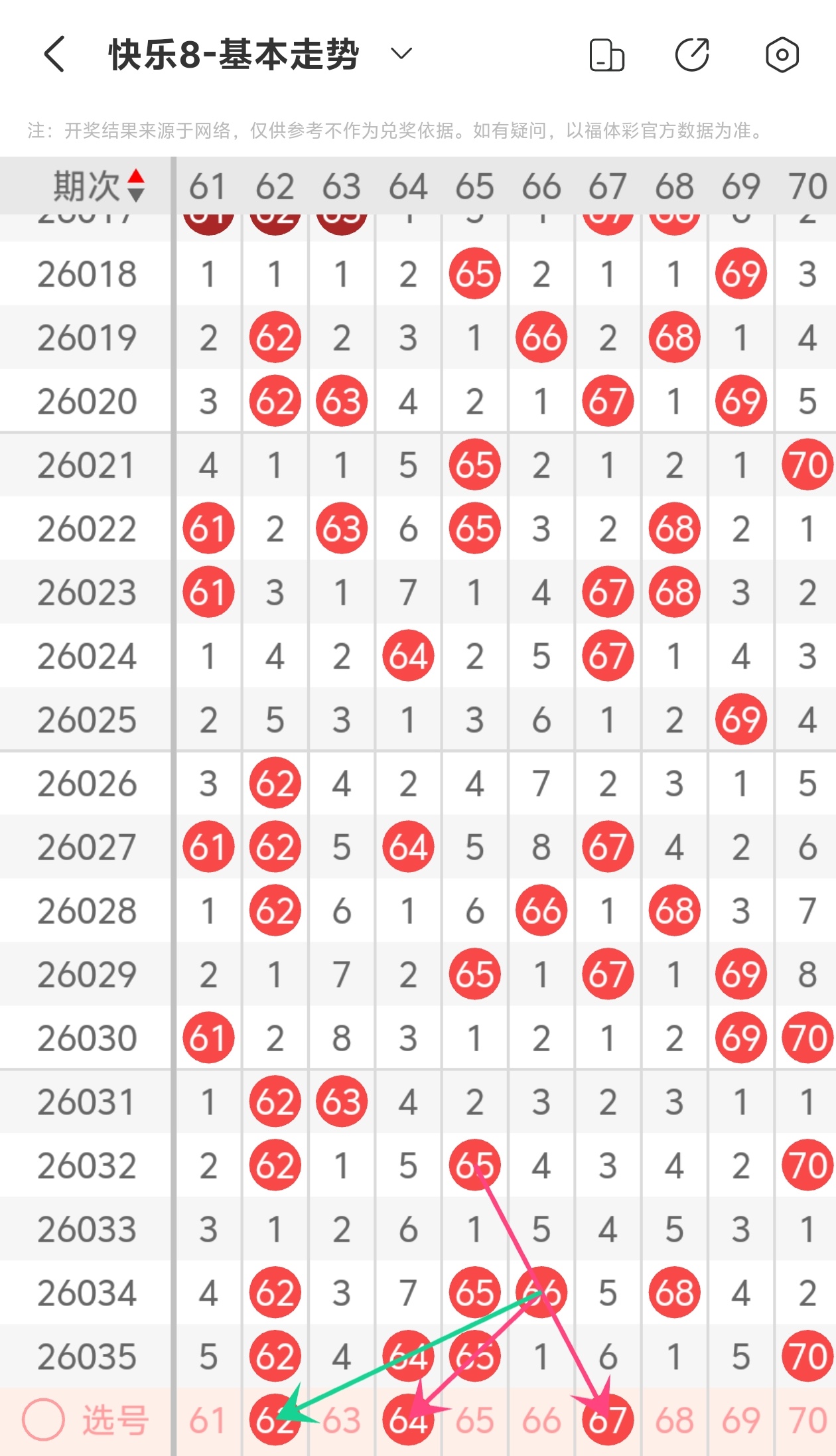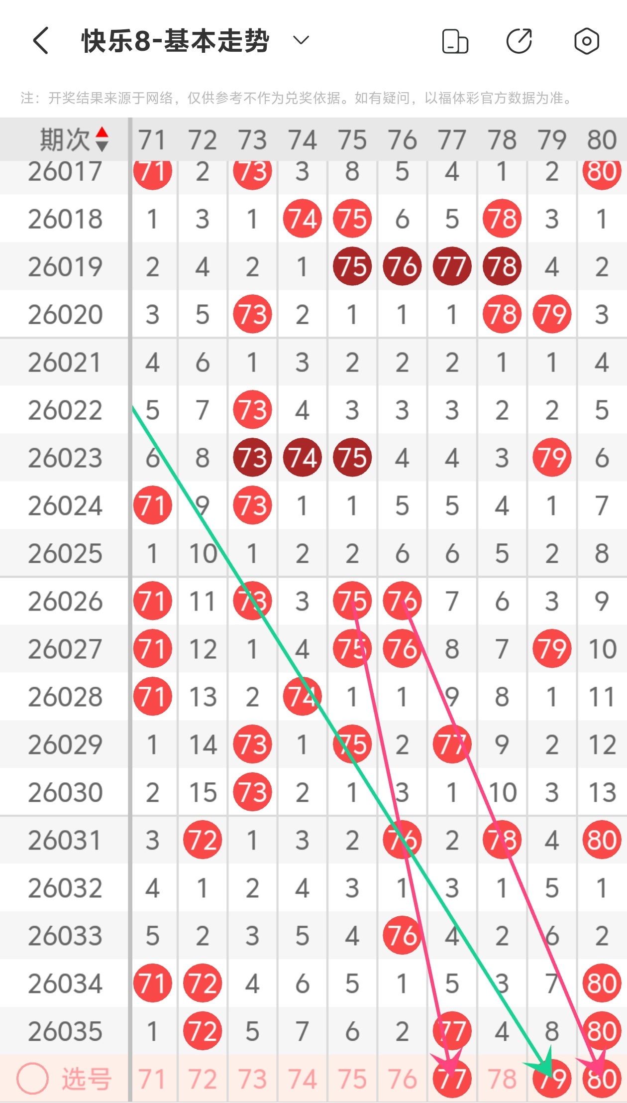大伙都知道,玩彩票得理性,谁也不能打包票百分百中奖,别人的看法能参考,自己的判断也不能丢。但我这次对2026036期福彩快乐8的分析,那可是下足了功夫!