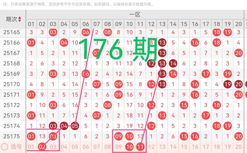 01-20区间,上期集中开出了7个号码(01 03 09 10 15 16 20),此区间出号较多,但短期内热度过热,本期可能会保持一定程度的降温,预计有4-5个号码的开出空间。从历史数据来看,这个区间的号码往往呈现两种形态:要么是连续多期集中在某个小范围(如01-10段),要么就是呈现散点式分布。号码02已经遗漏了13期,号码11已经遗漏了13期,本期根据划线走势来看,极有可能会在本期出现。号码10这个低频冷号虽然在上期已经开出,但是历史遗漏较大,本期有可能会继续出现。因此综合推荐该区间号码【02 10 11】