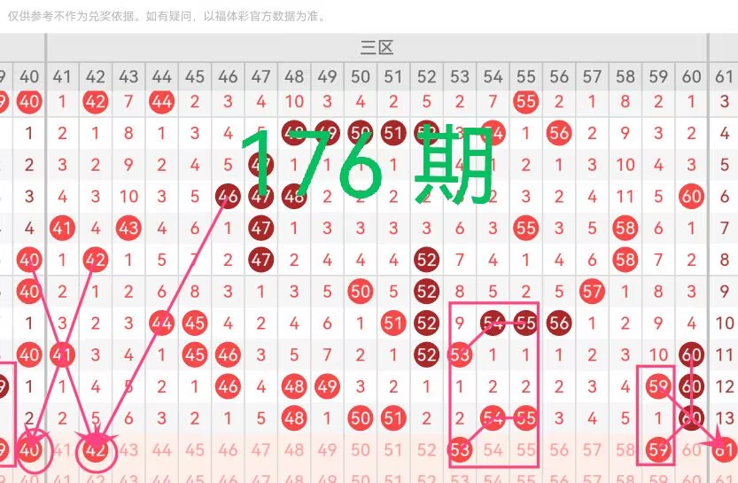 41-60区间,在上期开出了6个号码(48 50 51 54 55 60),此区间出号较多。按照走势规律,密集出号后往往会出现一定程度的回落,预计本期会减少到3-4个左右。这个区间的号码特征比较明显,经常会出现等距斜连号的情况。比如号码54和号码60常常会带动号码53和59的出现。号码42遗漏多期后,常常会回补出现,形成宠爱后形式。因此综合推荐该区间号码【42 53 59】