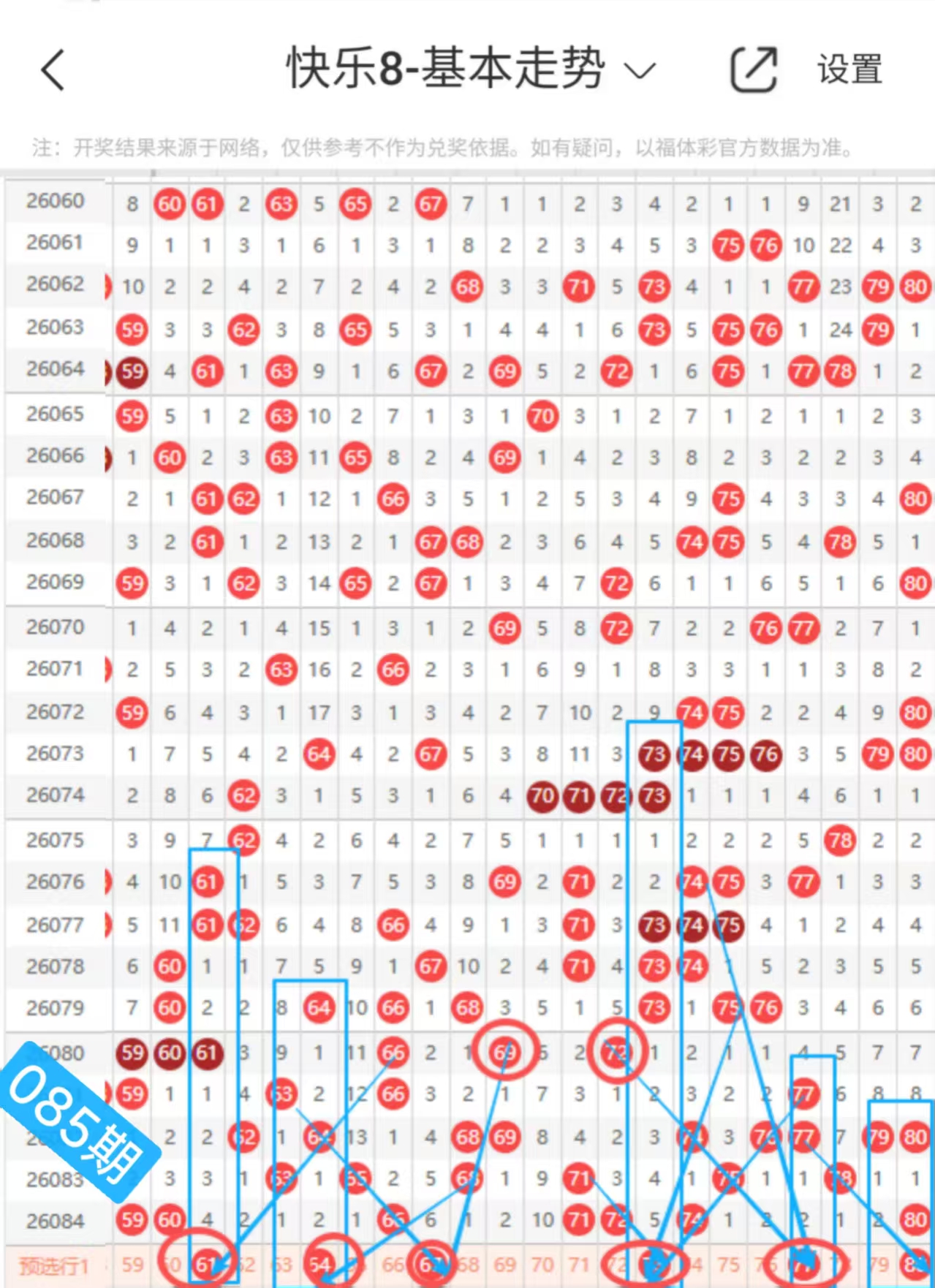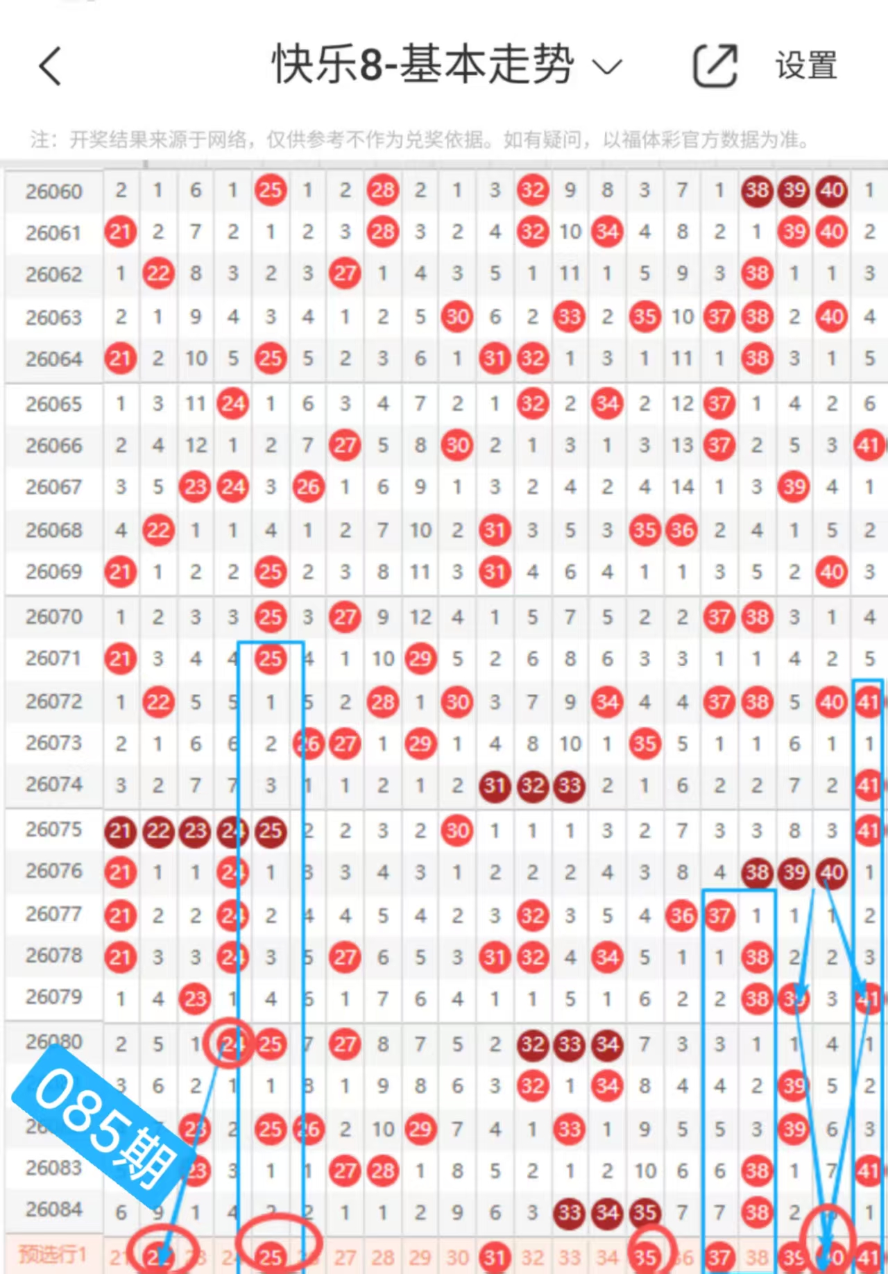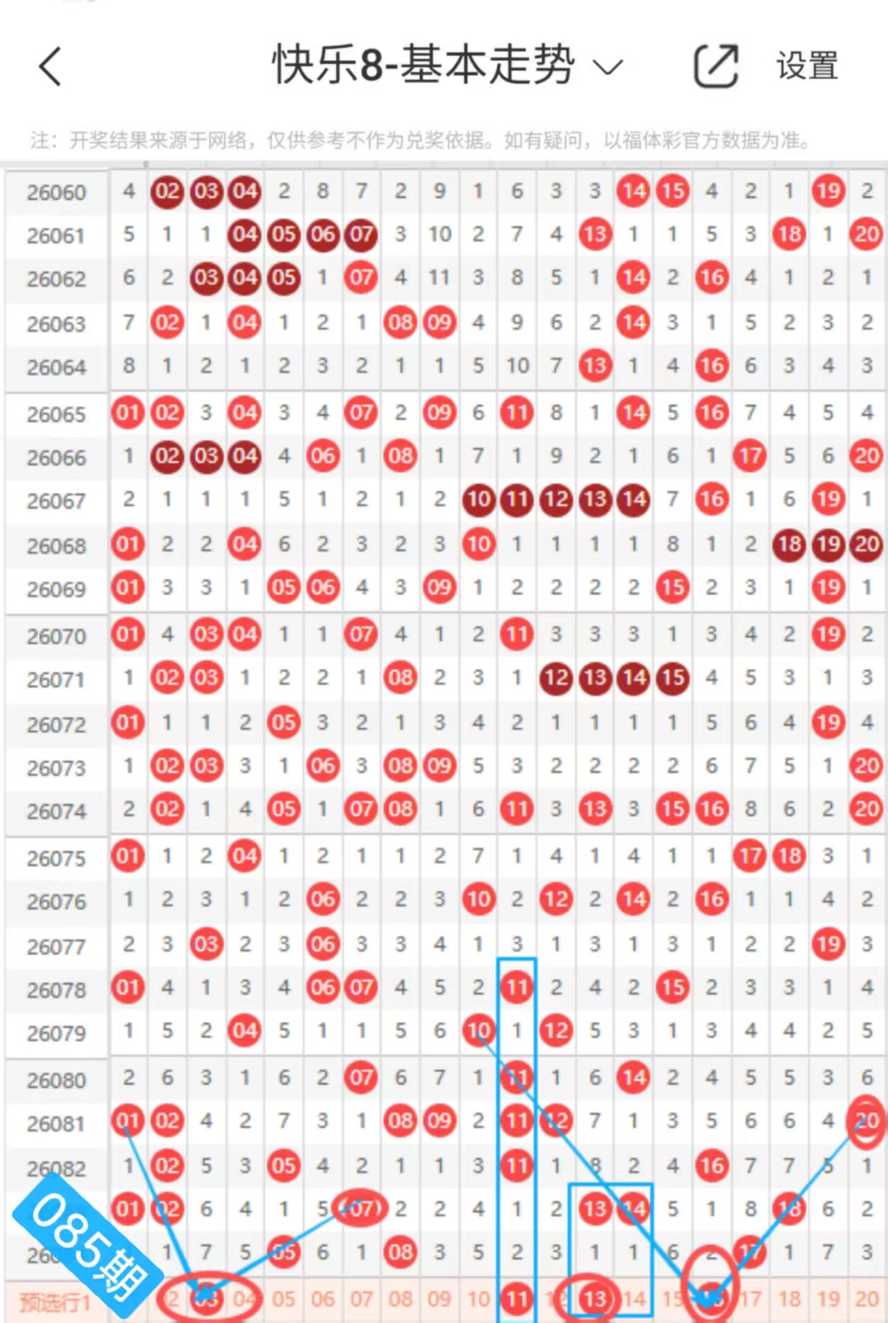 快乐八085期走势分析(上期会员文章选二中+继续跟上吃肉)