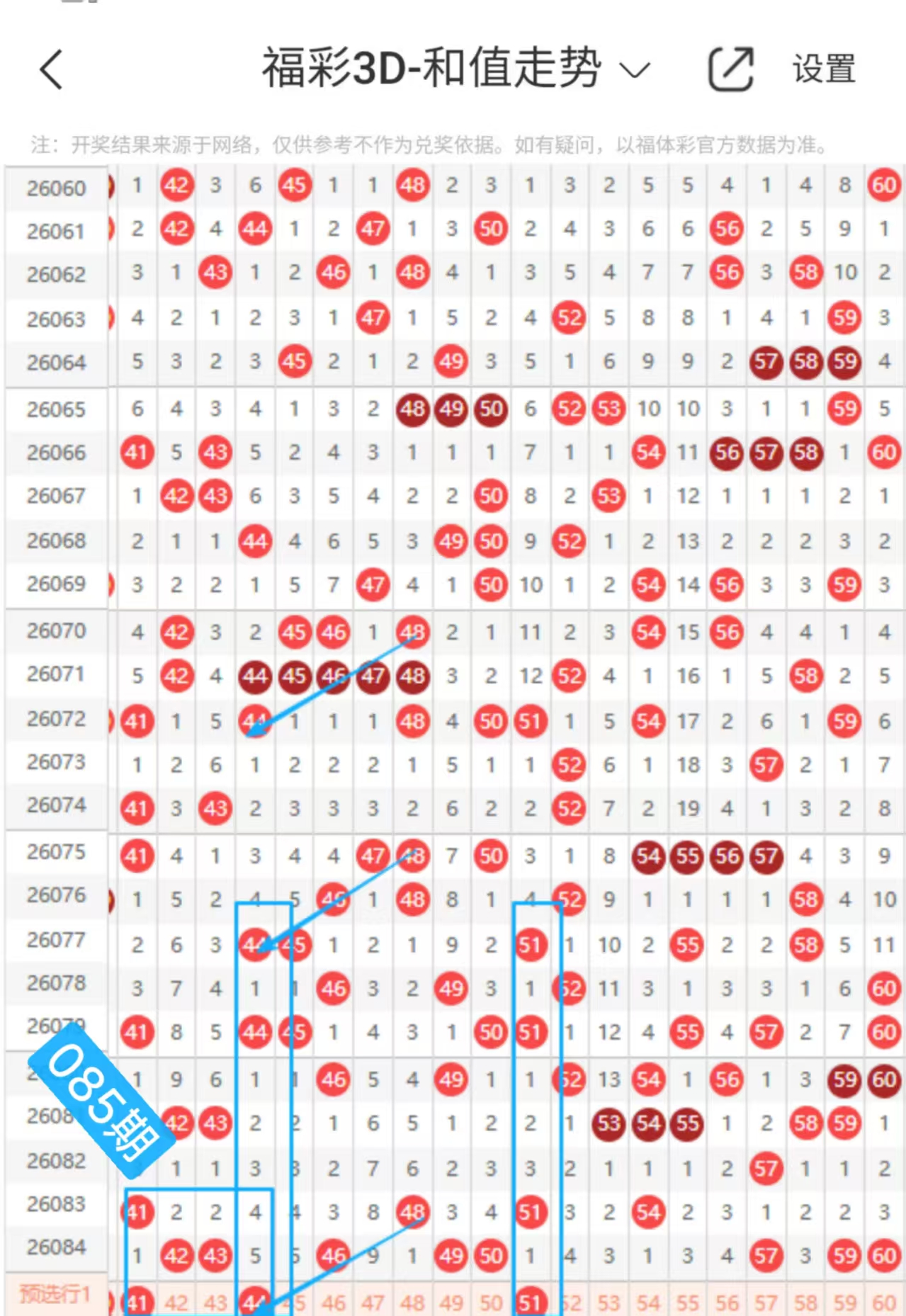 80号:这个号码本期是假四连顺子跳格斜连的下落走势的,继续看走重合下落的走势的。
