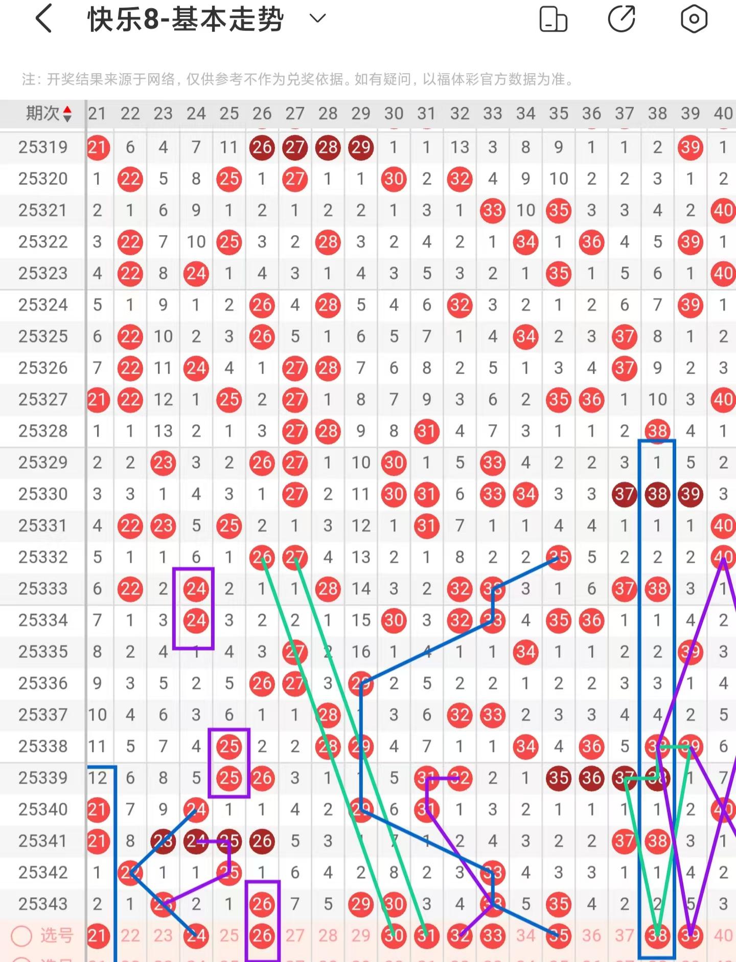 二区间上期大面积增加落号,一共开出六个号码球,本期考虑等同数量的号码球,注意百期相似形态的21号码球,阶梯落位重码走势注意22、26号码球,注意斜连走势回补的24号码球,两码同落下期回补一码的走势注意23、24号码球,同时24号码球也是百期相似形态,阶梯落位连码走势注意30、31号码球,注意百期相似形态的32号码球,注意隔期斜连走势回补的35号码球,注意期数和值加减法的38号码球,同时注意37、38、39号码球的走势与三区间的48、49、50号码球的走势相似,本期注意38号码球,注意斜连走势构成平行四边形形态的39号码球,防守隔期对称回补的40号码球,因此二区间关注21-24-26-35-38。注意本区间的选二复式21-24-38。