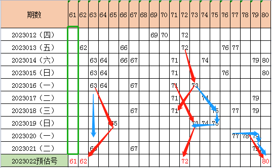 在013期的72隔两期斜开出73往回隔两期开出71形成一个大三角,那么今天会继续这种走势补回72这个号码吗?