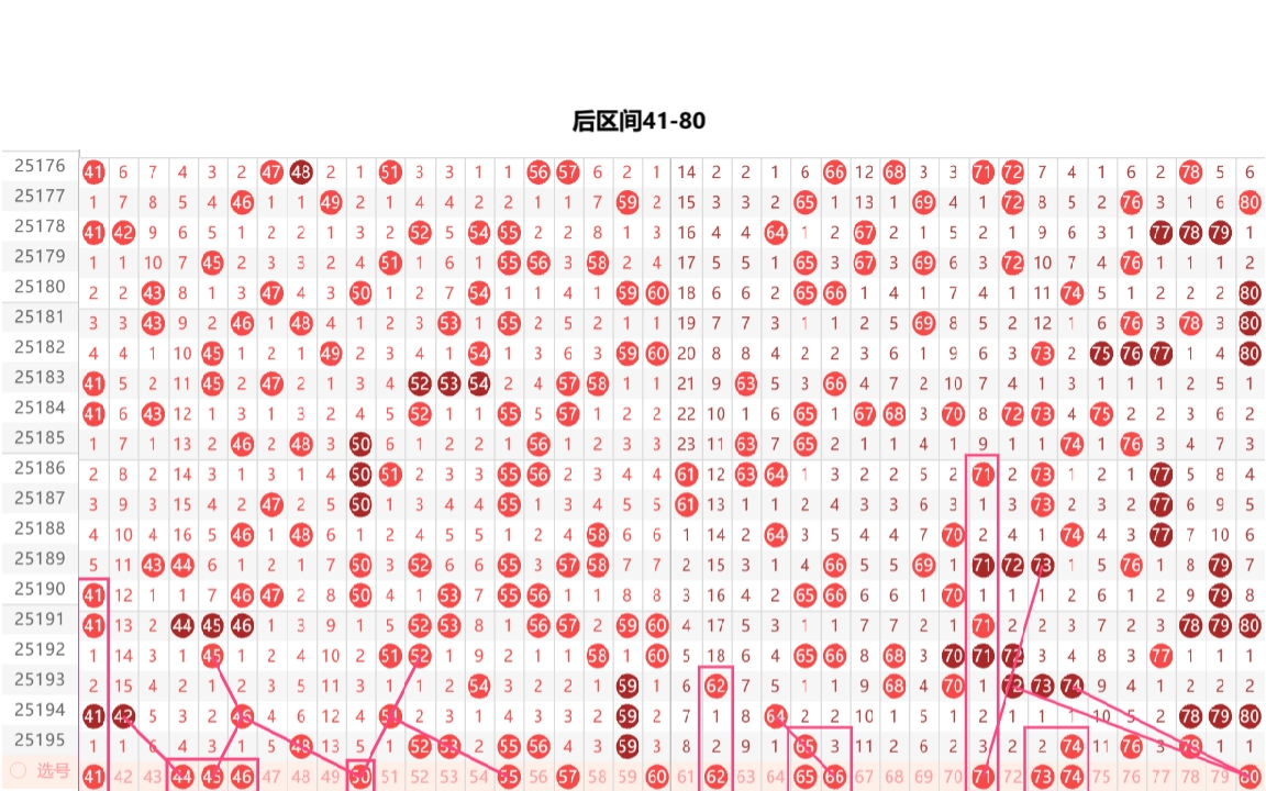 第四小区间,61-80,上期该区间4号码,本期的走热的几率是比较大的,本期的61 70的组合开出的几率也是比较大的,这里的63 72的组合本期的开出的几率也是比较大的,本期的63 64的姐妹组开出的几率也是比较大的,本期的69 75的组合落号几率还是比较大的,本期的75 79的组合和64 75的组合关注下落号的几率是比较大的,本期的61 62的姐妹组合和62 65的组合参考下落号的几率也是比较大的,本期的65 69的组合和62 65的组合关注下开出一组的几率是比较大的这里比较看好62 65的组合的开出,本期的66 67的姐妹组合开出的几率也是比较大的这里的76 77的姐妹组合开出的几率也是比较大的这里的61 67的组合开出的几率也是比较大的,本期的77 80的组合开出的几率也是比较大的这里的