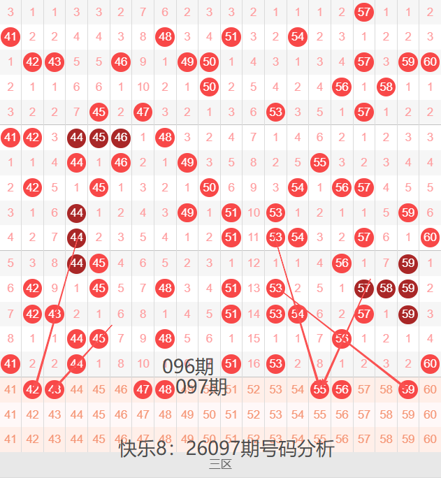 三区间41-60号码球走势,如下图: