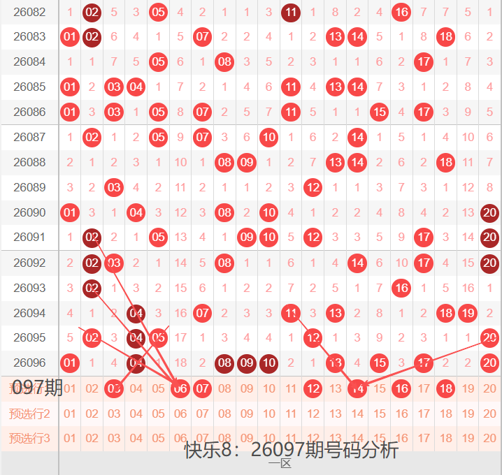 26097期,我们先看下一区间:01-20号码球,如下图: