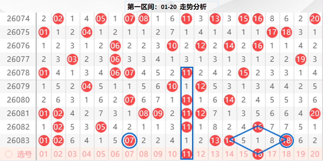 一区分析:【01-20】(走势图标注号码非小黄车大底,请谨慎参考,具体思路将在直播间分享讨论)