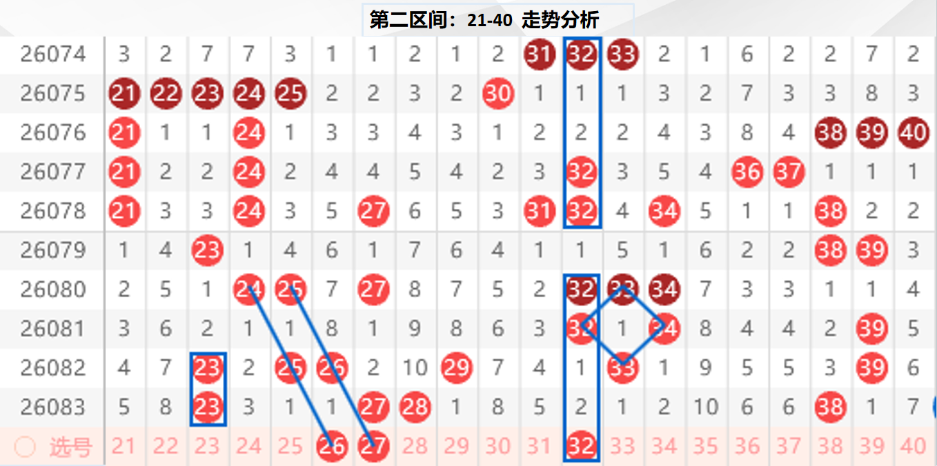 二区分析:【21-40】(走势图标注号码非小黄车大底,请谨慎参考,具体思路将在直播间分享讨论)