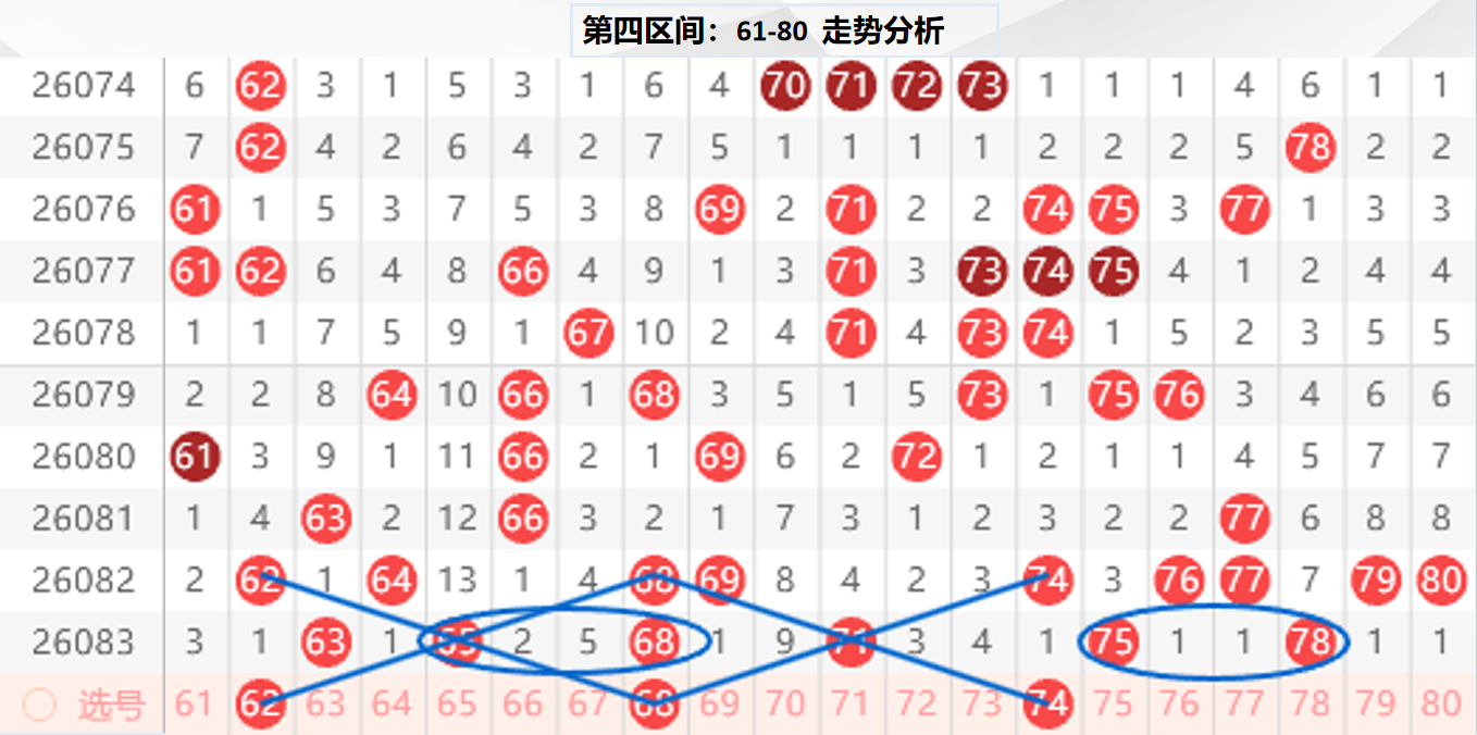 四区分析:【61-80】(走势图标注号码非小黄车大底,请谨慎参考,具体思路将在直播间分享讨论)