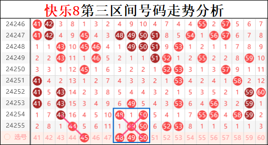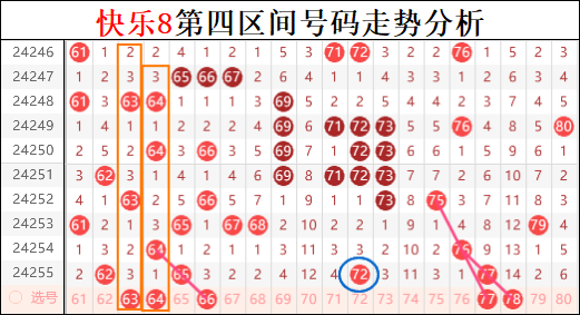 四区再次延续冷态走势,前半部分主线持续下拉,后半部分呢孤码一意孤行,好在上期的孤码楷书出现分边。本期雄区间回调走势看,四区作为号码最少的区间,应该有机会出现区间回调下的爆发走势。尤其是连续多期在区间上缺少重号和连的布局,这给本期四区的走向埋下了新的机会,所以本期四区刻意适当操作起来,最好的方式就是寻求主线回归重的重号和连码布局。