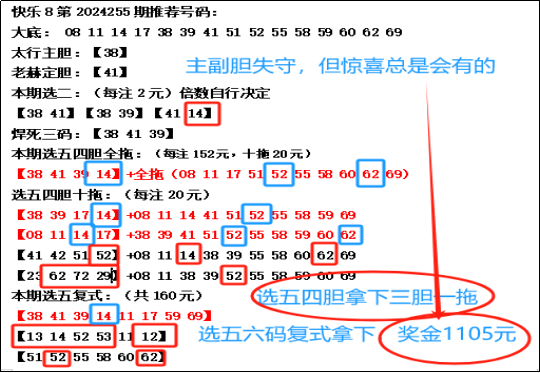 太行老赫快乐8第2024256期走势分析:初见效果回馈
