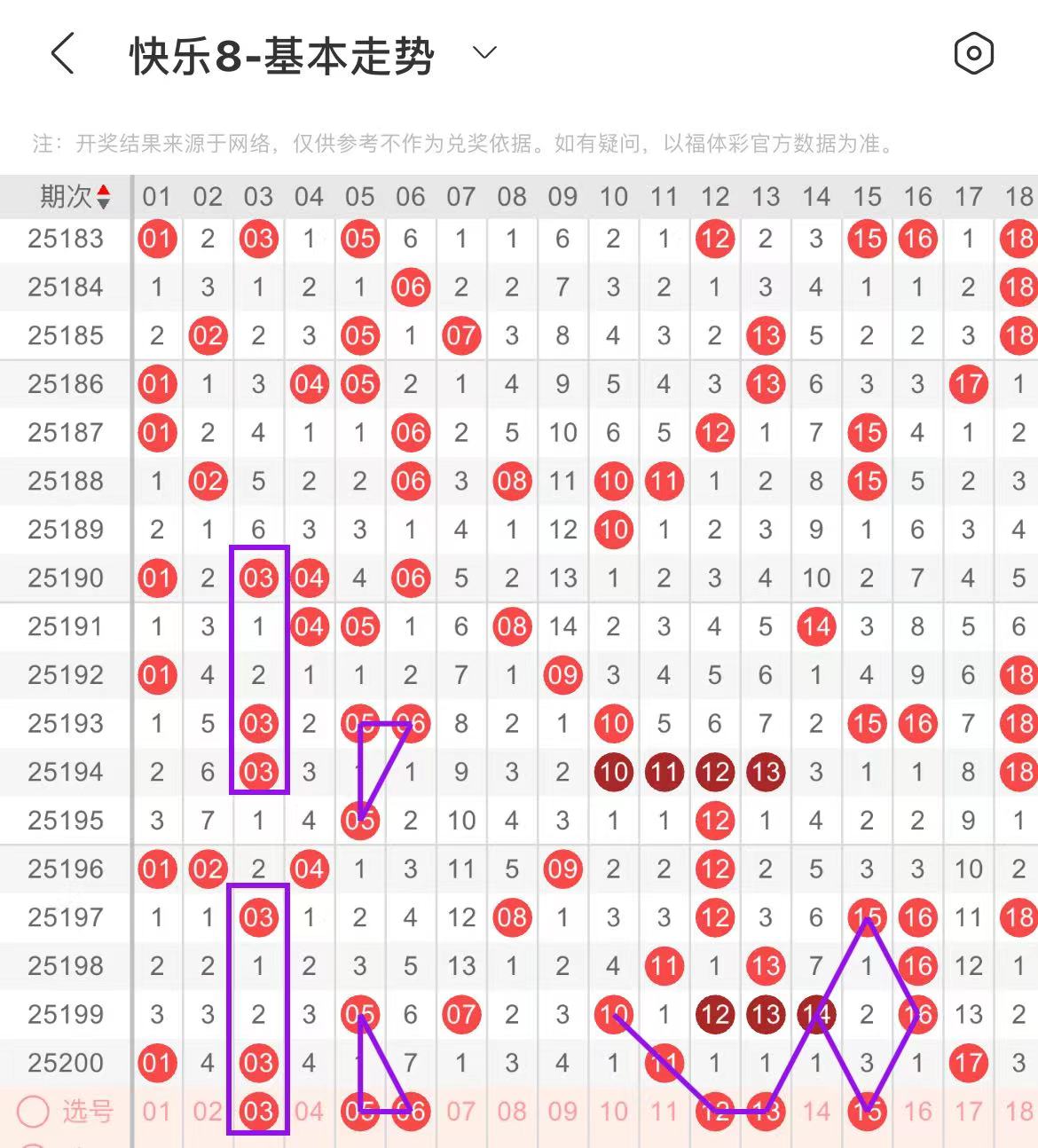 01-10区:本区间上期开出了两个号码,从号码走势图上看,该区现属于温号区,本期重点关注形态号码开出,出号个数应该在两三个号码之间。本期有出号走势的号码有03号,跟上面走势形态相同,05.06号,形成一个三角走势形态。