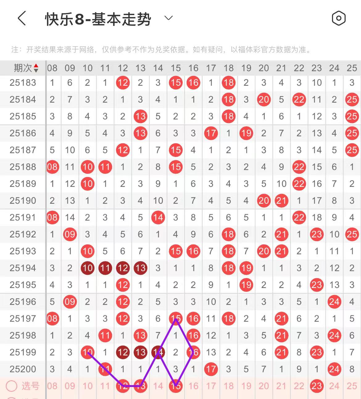11-20区:本区间上期开出了两个号码,从号码走势图上看,该区现属于温热区,本期重点关注前半区号码回补,出号个数应该在三个号码左右,本期有出号走势的号码有12.13号,斜连转直连出号走势,15号,形成一个菱形走势形态。